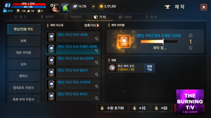 5만으로 희귀변신카드 아크드래곤나이트를