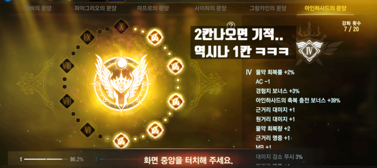 아인하사드 문양 ~! 딱 2칸만 나와주면 되는데 ..... 역시나 1칸^^ 1칸 전진에 위로